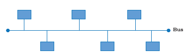 12. Draw a network layout of star topology and bus topology connecting five computers.