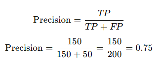Precision = Correct Positive PredictionsTotal Positive Predictions = TP / (TP + FP) = 240 / (240 + 60 )